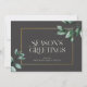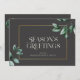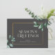 Elegante y elegante tarjeta de felicitaciones de vacaciones de negocios que lee GREETING DE SEASON junto con modernos ilustraciones de eucalipto acuarela dentro de un diseño impreso de marco dorado, tu mensaje personalizado en la parte posterior junto con tu logo corporativo.
