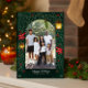 Envía buenos deseos esta temporada navideña con una hermosa tarjeta de Navidad familiar que presenta un diseño festivo verde y dorado, faroles brillantes y detalles alegres de acebo. Perfecto para compartir amor, alegría y espíritu navideño con amigos y familiares. Personaliza con tu propia foto y saludo para un recuerdo sincero.