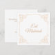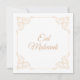 Tarjeta de felicitación islámica de estilo vintage y ornamentado para Eid Mubarak que puedes enviar a familiares y amigos como regalo durante esta ocasión religiosa musulmana especial. Esta plantilla personalizable tiene un fondo blanco simple con una fuente de escritura dorada. Decoración de filigrana de hoja barroca de color dorado en la esquina del marco. Puedes editar esta tarjeta con la herramienta de diseño para cambiar el estilo de fuente y los nombres de la pareja. Felices fiestas. Deseos de Eid ul-Fitr. Elige el tipo de papel. Incluye sobre interior. Su línea para diseño por Ayesha.