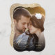 Esta elegante y elegante invitación boda de vacaciones/navidades / primera tarjeta navideña presenta la palabra 'Merrily Ever After' en una mezcla de elegante y floreciente caligrafía de escritura y clásico sif texto en falso Relieve metalizado dorado sobre una foto completa de sangre. En la parte inferior derecha de la tarjeta se muestran los nombres de la pareja y los detalles del boda en el texto clásico del serif. La parte posterior de la tarjeta tiene un patrón de puntos de nieve blancos sobre el fondo falso de Relieve metalizado dorado. El texto editable y el fondo se pueden cambiar a cualquier color que elija. Obra de arte diseñada / original por fat*fa*tin. Fácil de personalizar con tu propio mensaje de texto, nombre, año, foto o imagen. Puede consultar más funciones de edición en la página "edite el diseño" www.zazzle.com/color_therapy www.zazzle.com/fatfatin_blue_knot・・・・・・. www.zazzle.com/fat_fa_tin