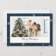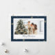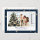 Elegantes tarjetas de Navidades fotográficos azules con nevada en caída, copos de nieve y estrellas. Personaliza fácilmente esta tarjeta azul de vacaciones con tu imagen favorita, un nombre de familia y texto.