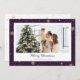 Elegantes tarjetas de Navidades de fotos moradas con nieve cayendo, copos de nieve y estrellas. Personaliza fácilmente esta tarjeta de vacaciones de fotos moradas con tu imagen favorita, un nombre de familia y texto.
