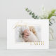 Eleve su saludo de vacaciones con este diseño minimalista y elegante que presenta un borde de gradiente dorado que rodea su preciada foto familiar. También muestra un mensaje atemporal de "Paz en la Tierra" en la tipografía de los personalizados de oro. La parte posterior incluye una plantilla de foto cuadrada con bordes dorados adicional, así como campos de texto editables para su personalización y mensaje.