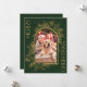 Comparta un recuerdo preciado con esta tarjeta de Navidades de lujo con su foto favorita de vacaciones. Un magnífico y rico fondo verde está bellamente enmarcado por ilustraciones florales y botánicos intrincados, inspirados en el Relieve metalizado dorado, que llevan la vista a la imagen de su personalizado dentro de un elegante arcos. El diseño evoca la calidez y la maravilla de las vacaciones de invierno, lo que lo convierte en la forma perfecta de enviar sus más cálidos deseos escritos para usted en la parte trasera.