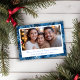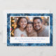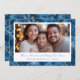 Tarjeta Festiva Elegante foto de vacaciones con copos de nieve azu