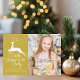 Tarjeta Festiva Elegante foto familiar de Navidades de renos dorad