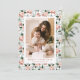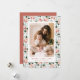 Elegante tarjeta de foto navideña con tu foto vertical enmarcada en blanco con un patrón de fondo de flores de invierno y follaje en tonos rosa, verde, malva y azul. Personalice la parte delantera de la tarjeta de Navidades florales con un saludo personalizado y su apellido. La tarjeta de Navidades fotográficos se revierte para mostrar tu mensaje personal.
