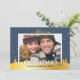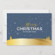 Celebre la magia de la temporada con esta tarjeta de foto familiar personalizable de "Feliz Navidad" que presenta un fondo de paisaje invernal y copos de nieve brillantes. La tarjeta está adornada con elegantes acentos azules y dorados para agregar un toque sofisticado a sus saludos navideños. Reemplace la foto del marcador de posición con su propia foto y agregue el nombre de su familia para crear una tarjeta de Navidad única y singular. La parte trasera de la tarjeta presenta nieve que cae, un simple saludo de "Feliz Navidad" y texto adicional personalizable.