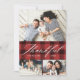 Presentando tres de tus fotos con un elegante y moderno guión de caligrafía que dice "Agradecido". Personaliza con tus propias fotos, nombre y texto. La parte posterior presenta un patrón de comprobación de búfalo de color negro y rojo para un toque especial. No deje de visitar la tienda para ver más tarjetas de fotos de Día de Acción de Gracias.