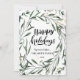 Elegante Dorado Confetti Pino Foliage Watercolor Greenery Moderna Tarjeta De Vacaciones Elegante De Estilo Guión. Envíe sus cálidos deseos y saludos de vacaciones a sus seres queridos con esta minimalista y moderna tarjeta de vacaciones para Navidades. Todos los textos están preorganizados para que puedas personalizarlos fácil y rápidamente con tus propios detalles. ¡Felices Fiestas!