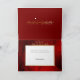 Muestra tu foto familiar especial de vacaciones con este elegante diseño con delicados Navidades de oro trazados en línea, flores y follaje contra un fondo de artesano rojo ruby. También incluye un borde de oro falso martillado alrededor de la plantilla de una foto y campos de texto editables. El interior presenta un elemento en blanco y campos de texto adicionales.