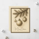 Envía elegantes felicitaciones de vacaciones con esta tarjeta de Feliz Navidad en tonos cálidos marrones y beige. El delicado boceto vintage de una rama de árbol de Navidad con adornos le da un encanto atemporal y antiguo. Su diseño minimalista y letra elegante añaden un toque de sofisticación y belleza rústica. Perfecta para aquellos que aman el diseño simple pero festivo, los detalles botánicos y la tipografía elegante. Una tarjeta de Navidad única sin foto que captura el espíritu acogedor y alegre de la temporada.