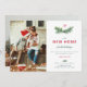 Una tarjeta de Navidad familiar elegante y refinada, simple, para cambio de dirección con plantillas para dos fotos, que presenta un par de pequeñas ramas de abeto de invierno enmarcando el monograma familiar, con tipografía y caligrafía en verde y rojo de follaje navideño. Una encantadora tarjeta de Navidad "nos hemos mudado" botánica que puedes personalizar con tu nombre(s), el año y fotos familiares (o foto de los niños, etc.). Un anuncio de mudanza elegante y con estilo.
