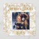 Elegante patrón vintage tipografía merry & Bright. Un hermoso diseño brocado angustiado con tu foto favorita en el centro. Personalice su mensaje y nombre en el reverso. La tarjeta de felicitación perfecta para las vacaciones.
