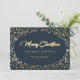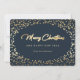 Elegantes tarjetas de vacaciones azules y doradas con nieve dorada sobre fondo azul. Personaliza fácilmente estas tarjetas de vacaciones minimalistas con tu nombre y texto familiar.