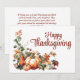 Celebre el Día de Acción de Gracias con nuestra tarjeta de vacaciones diseñada cuidadosamente, perfecta para expresar su gratitud y buenos deseos. La parte frontal de la tarjeta presenta un encantador arreglo de calabazas de otoño y hojas coloridas sobre un simple fondo blanco, capturando la esencia acogedora de la temporada. La letra de estilo caligráfico elegante deletrea un mensaje festivo, agregando un toque de sofisticación al diseño. En el reverso, un sentido mensaje de Día de Acción de Gracias completa este saludo significativo, lo que lo convierte en una forma ideal de conectarse con seres queridos durante esta temporada de agradecimiento.