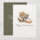 ¡Celebre la abundancia de la temporada! Esta encantadora tarjeta de Acción de Gracias con acuarela presenta un delicioso carro rústico que se desborda con una rica cosecha de maíz, calabazas y hojas de otoño. Un pavo tradicional y una cálida linterna completan esta escena acogedora, que transmite perfectamente el espíritu de la festividad de la cosecha. Fondo sólido en el reverso con saludo y firma personalizables. ¡Envíe sus mejores deseos para una Acción de Gracias alegre y abundante!