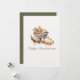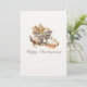 ¡Celebre la abundancia de la temporada! Esta encantadora tarjeta de Acción de Gracias con acuarela presenta un delicioso carro rústico que se desborda con una rica cosecha de maíz, calabazas y hojas de otoño. Un pavo tradicional y una cálida linterna completan esta escena invitadora, que transmite perfectamente el espíritu de la festividad de la cosecha. Fondo sólido en el reverso con saludo y firma personalizables. ¡Envíe sus mejores deseos para una Acción de Gracias alegre y abundante!