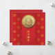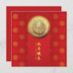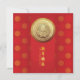 Papel de Conejo Dorado cortado en un círculo dorado con "Año del Conejo" + "Año Nuevo Chino Feliz" en inglés y chino (caligrafía) con un fondo decorado de motivos rojos. Diseño en tarjeta plana cuadrada. Perfecto para el Año Nuevo Chino del Conejo 2023.