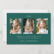Desee a sus seres queridos una feliz temporada de vacaciones con nuestra tarjeta de foto de la Elegante Paz. La tarjeta de vacaciones de la moda muestra tu foto favorita en el frente con "Paz en la Tierra" en un overlay de caligrafía y el nombre de tu familia debajo. En el reverso se muestra el año en curso, tres fotos adicionales, un breve saludo personalizado y los nombres de su familia en un fondo verde fresco. Diseñado para coordinar con nuestra colección de vacaciones Elegant Peace.