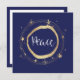 Difunde el mensaje de paz en esta temporada navideña. Un hermoso diseño moderno de estrella dorada rodea la palabra Paz. Fondo azul. Agrega tu mensaje personal. Tarjeta perfecta para enviar a familiares y amigos para hacerles saber que estás pensando en ellos durante la temporada navideña.