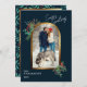 Esta elegante tarjeta de Navidad plana cuenta con un marco de fotos en arco dorado, rodeado de un follaje y bayas de invierno y el mensaje "Greetings's Season" (Saludos de temporada). Hacerlo verdaderamente único con su apellido y fotografía. Agregar un mensaje personal en la parte posterior o dejar en blanco eliminando texto en la sección Personalizar esta sección