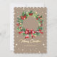 Elegante foto de la tarjeta navideña Merry con una corona acuarela de bayas, hueso, conos de pino y ramas de árboles de coníferas. Una foto en la parte trasera. Personalice fácilmente esta moderna tarjeta de vacaciones con fotos con su foto y nombre de familia.