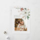 Haga una declaración memorable esta temporada navideña con este diseño de moda con plantilla fotográfica, poinsettia blanca, cono de pino, ramas de abeto, vegetación y hojas y bayas de oro dibujadas en línea con campos de texto editables. Atrás se muestra un gráfico floral complementario y un campo de texto adicional.