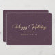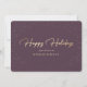 Elegantes tarjetas de vacaciones de Relieve metalizado morado y oro falso con título con letras a mano. Personaliza fácilmente estas tarjetas de vacaciones de negocios moradas y doradas con el nombre de tu empresa. El fondo se puede cambiar a cualquier color.