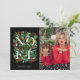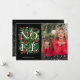 La palabra NOEL entre la vegetación y las bayas en un fondo negro acentúa tu foto favorita en el frente con tus nombres y tu saludo personal en la parte trasera de estas tarjetas de fotos de vacaciones de los Navidades. COINCIDIENDO con los artículos de nuestra tienda.