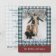 Esta tarjeta de felicitación navideña se destaca por su diseño elegante y único. Cuenta con un saludo atemporal de "Felices Fiestas", personalizable según su preferencia, sobre un diseño de patrón de cuadros en azul turquesa, blanco y rojo granate. La parte delantera ofrece espacio para el nombre de su familia, foto y saludo estacional personalizado, mientras que la parte trasera es perfecta para agregar un mensaje estacional personalizado o poema. Es una forma elegante de enviar sus deseos navideños.