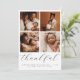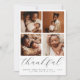 Esta sencilla y moda escuela de cuatro fotos de la ducha de bebé, plantilla de tarjeta de agradecimiento es perfecta para presentar a su bebé en la temporada de fiestas de Acción de Gracias! Presenta un aspecto elegante, moderno y nítido, blanco y negro, cuatro de sus fotos favoritas para bebés, un encabezado "agradecido" en una caligrafía de escritura elegante, y el nombre y estadísticas de su bebé con un tipo de letra de moda clásico. Al revés aparece el mensaje de agradecimiento de su personalizado y un pequeño corazón de boho. Usa las herramientas intuitivas de diseño, tus fotos favoritas y tu inspiración, y haz que este minimalista y elegante collage de fotos de regalo de ducha bebé gracias / tarjeta de anuncio de natalidad de Acción de Gracias exclusiva tuya!