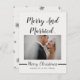 Un sencillo blanco moderno y elegante Navidades recién casados vacaciones para nueva pareja casada . Es una alegría experimentar tu primera Navidad juntos. Y esa alegría se expresa enviando Los deseos de la Feliz Navidad a sus seres queridos. Esta maravillosa y elegante carta tiene a Merry And Married arriba la foto de la pareja . Y bajo ella Feliz Navidad . Con el nombre de la familia personalizable y la foto de la pareja. Lo que se puede cambiar simplemente haciendo clic en el botón Personalizado. Agarra y envíalo a tus seres queridos.