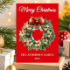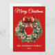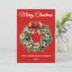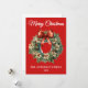 Elegante tarjeta de vacaciones sin foto con Navidades acuáticos de festividad adornada con arco rojo y rodeado de bayas huecas. Personalice la tarjeta agregando un saludo personalizado, su apellido y el año. Agregue un mensaje personalizado al interior de la tarjeta o deje en blanco para escribir el suyo propio. El dorso de la tarjeta de vacaciones de la corona de Navidades presenta un fondo blanco