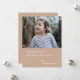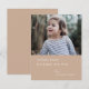 Tarjeta fotográfica plana simple, elegante y elegante con tipografía minimalista moderna que cita "alegría de vacaciones y un feliz año nuevo" en blanco sobre un fondo marrón marrón de arcilla tenue. El nombre, el año y el saludo se pueden personalizar fácilmente para un toque personal. Una carta de navidades sofisticada, minimalista y contemporánea que resalta de la multitud en temporada alta. La imagen que se muestra es para fines de ilustracion y sólo se sustituye por la suya. La imagen de marcador de posición es de una niña preciosa que usa un techo de rayas con manchas brillantes de oro con un fondo de bosque natural. #navidades #holidaycard #taupe #beige