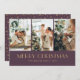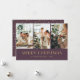 Tarjeta de Navidades de fotografía personalizado morada y dorada con un collage de fotos sobre fondo morado. Un Relieve metalizado dorado se estrella al fondo. Personalice fácilmente estas tarjetas de Navidades de fotos con sus imágenes y texto. El efecto Relieve metalizado dorado sólo se simula en las obras de arte.