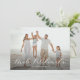 Disfrute de la calidez de una temporada de vacaciones como ninguna otra con nuestras modernas tarjetas de Navidad tropical. Estos saludos únicos muestran una foto familiar envuelta en un overlay de ensueño, perfectamente yuxtapuesta con la expresión hawaiana 'Mele Kalikimaka'. Para añadir un toque personal, el nombre de su familia ocupa el centro de la escena en medio de esta fusión de confort familiar y encanto exótico. Voltea la carta y descubre un fondo blanco limpio adornado con un bonito diseño de Navidades tropicales acuarelas, con una deliciosa mezcla de hojas de palma, adornos y estrellas brillantes. Defiéndete de la multitud este año y dilo con un giro tropical.