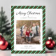 Elegante tarjeta de vacaciones para Navidades de fotografía de franjas verdes.