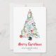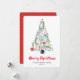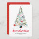 Envíe sus cálidos deseos y saludos de vacaciones a sus seres queridos con esta tarjeta de vacaciones de moda, minimalista y festiva con un hermoso árbol de Navidad con marco de coloridos y variados arcos de pino verde y flores de poinsettia bonito y rosa. Revertir para revelar un hermoso patrón de puntos dorados en papel rojo de borde redondo. ¡Les deseo a todos Feliz Navidad y Feliz Año Nuevo!