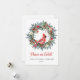 Tarjeta Festiva Elegantes Navidades de Pine Holly Wreath Cardinal