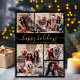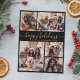 Elegante Minimal Modern Elegante Caligrafía Negro y Oro 5 Collages de fotos "vacaciones felices" Navidades de guiones Tarjeta de vacaciones. ++ POR FAVOR, TENGA EN CUENTA QUE ESTAS TARJETAS DE TAMAÑO DE 6,5" X 8,75" SON MÁS GRANDES QUE LA MEDIA, DEBIDO AL MAYOR TAMAÑO DE LA TARJETA, ES CASI SEGURO QUE LOS COSTOS DE POSTAL SERÁN MÁS ALTOS. SI PREFIERES EL TAMAÑO ESTÁNDAR DE 5X7", PUEDES ENCONTRAR LA TARJETA EN ESTE ENLACE: https://www.zazzle.com/happy_holidays_calligraphy_photo_collage_christmas_holiday_card-256888866811355533 O DESPLAZARTE, Y ENCONTRARÁS FÁCILMENTE LA TARJETA 5X7 EN LA COLECCIÓN DE ABAJO. +++ Esta plantilla festiva, minimalista, caprichosa de cinco (5) fotos de tarjetas de felicitaciones navideñas! El texto de saludo de las "fiestas felices" está escrito en un hermoso tipo de letra con letras a mano giratorias y cruz con cruz en oro sobre fondo de color negro. Al revés con tu plantilla de mensaje de bienvenida con un pequeño garabato cardíaco en blanco y una plantilla de foto horizontal. Tarjeta de saludo de bonito para su familia y amigos en temporada de vacaciones para Navidades.