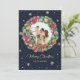 Tarjeta Festiva Elegantes Navidades Wreath Gold Blue Photo