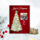 Envíe sus cálidos deseos esta temporada navideña con nuestra tarjeta de vacaciones color agua suave en árbol navideño, con su foto personal! Este encantador diseño muestra un bello árbol de Navidad en tonos suaves y verdes, adornado con cintas y adornos de acuarela y copos de nieve blancos. Esta tarjeta, que se sitúa sobre un fondo rojo festivo, irradia alegría navideña. Con espacio para tus recuerdos favoritos, es la manera perfecta de compartir alegría y calor con la familia y amigos. Crea un toque único que capta la magia de la temporada!
