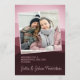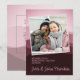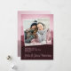 Tarjeta de vacaciones única, clásica, trendy, bonita y decorativa. Texto lindo y espacio para personalizar con una foto y nombres (o apellido) de su elección en un patrón de ondas abstractas de color rosa polvoriento y rojo granate muy oscuro en estilo degradado ombre. El reverso de la tarjeta tiene un texto de mensaje de vacaciones ya hecho que se puede ajustar fácilmente a su gusto y firmar con nombres individuales o su apellido.