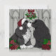 Hermosos cachorros de Newfoundland dibujados y coloreados a mano besándose bajo el muérdago
