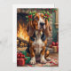 Tarjeta Festiva Endearing Basset Hound Dog with Christmas Wreath