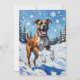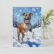 Tarjeta Festiva Energetic Boxer Dog Leaping in Winter Snow Fun