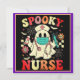 Tarjeta Festiva Enfermera Fantasma Linda Gráfico de Halloween Retr