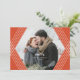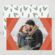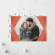 Esta tarjeta de foto navideña elegante presenta un marco de hexágono geométrico en blanco y naranja. Un divertido patrón de ramas de pino adorna la parte posterior de la tarjeta!