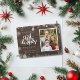 Difundir cálidos deseos de vacaciones con esta encantadora carta de Navidades rústicos! Con un fondo de madera adornado con copos de nieve y el mensaje "Enviar los mejores deseos y el amor", esta tarjeta ofrece espacio para una foto familiar personalizada. Personalizar con tu apellido y un mensaje sincero para crear un saludo acogedor y festivo. Perfecto para compartir su alegría de vacaciones con amigos y seres queridos, esta carta le aporta un toque cálido y rústico a sus saludos navideños.